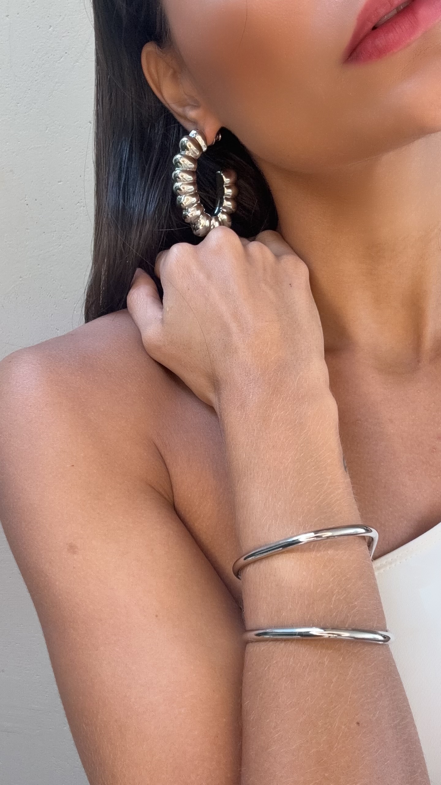 O brinco argola torcida grande é a tradução perfeita da sofisticação em um design moderno. Seu acabamento delicadamente torcido adiciona movimento e brilho à peça, transformando um acessório tradicional em um ícone de estilo.