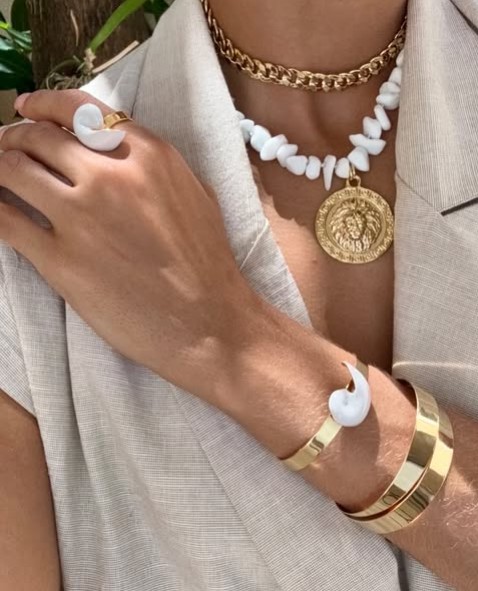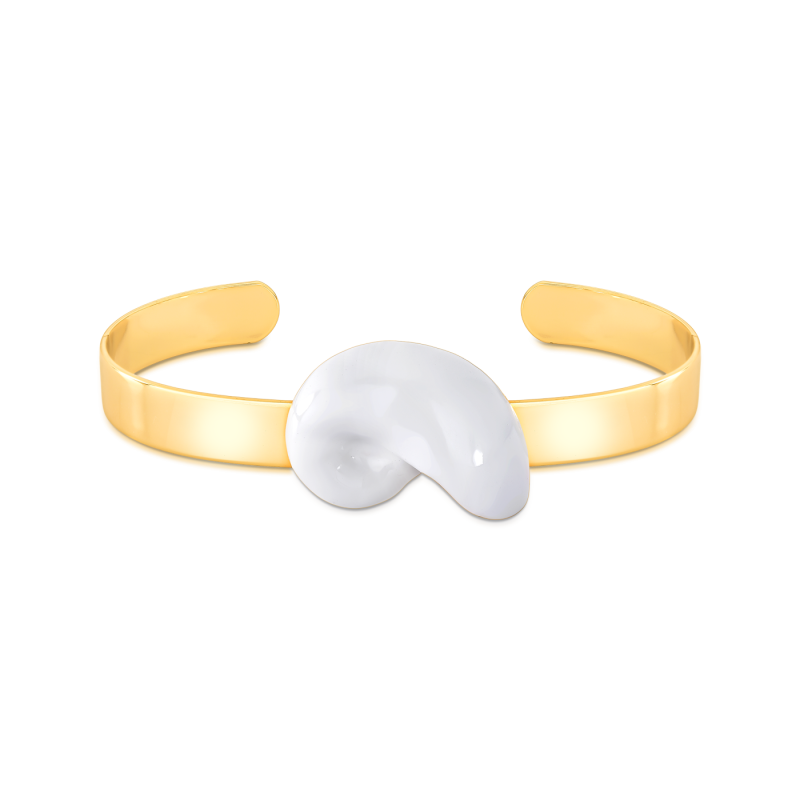 O bracelete fino com concha esmaltada é uma semi-jóia que combina sutileza e sofisticação em um design leve e elegante. O detalhe da concha esmaltada traz um toque artístico e exclusivo, remetendo à feminilidade e à conexão com o mar.