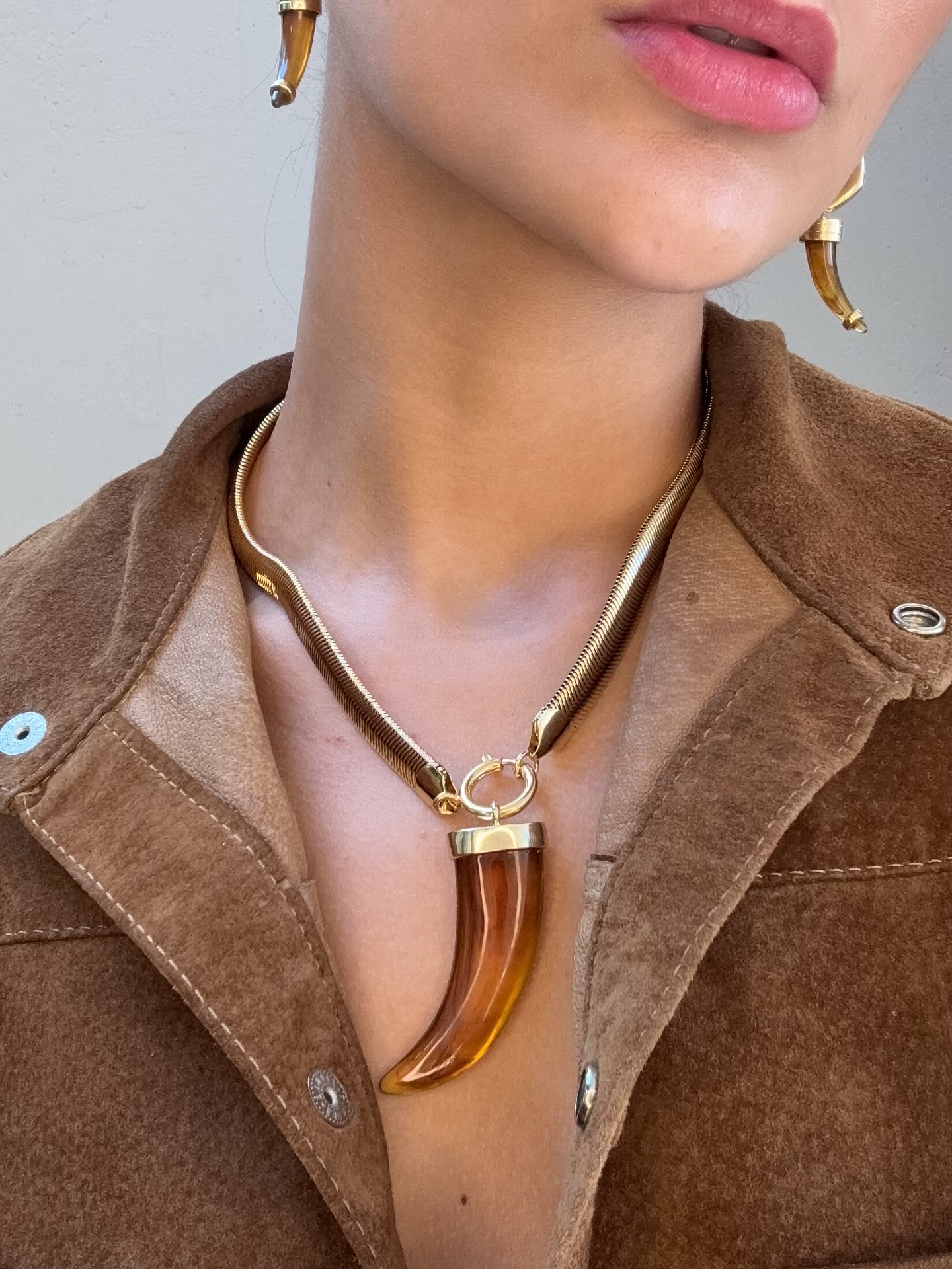 O colar cobra com pingente de chifre é a escolha perfeita para mulheres que desejam transmitir força e elegância em um único acessório. Seu design marcante traz a textura sofisticada da corrente estilo cobra, combinada ao símbolo do chifre, que representa poder, proteção e estilo singular.