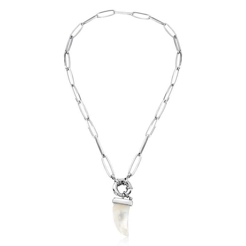 CORRENTE COM FECHO BOIA E PINGENTE DE CHIFRE MADRE PEROLA