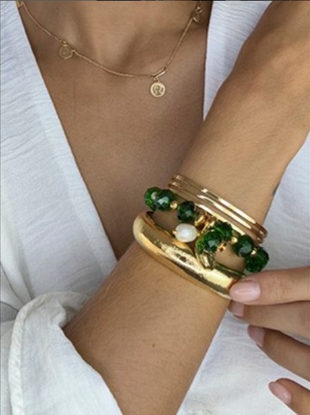 Seu design moderno e confortável valoriza o pulso com discrição e estilo, podendo ser usada sozinha para um visual minimalista ou em composições para criar produções mais marcantes.